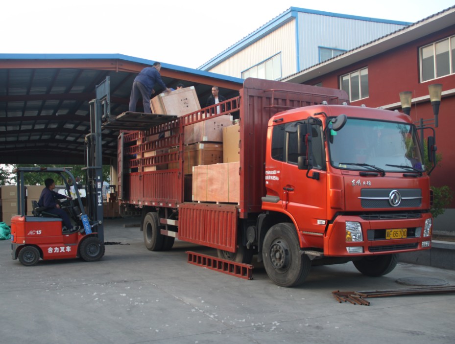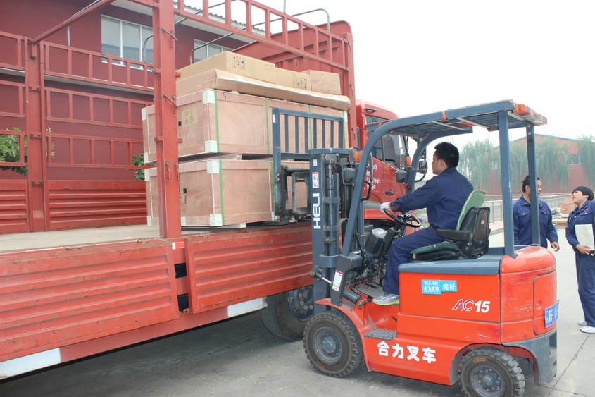 他們有條不紊、一絲不茍,把展品一件件的搬運上車。為了確保產品在運輸途中的安全,他們更是仔細揣摩、合理安排擺放位置。好高!兄弟們一定要注意安全??!