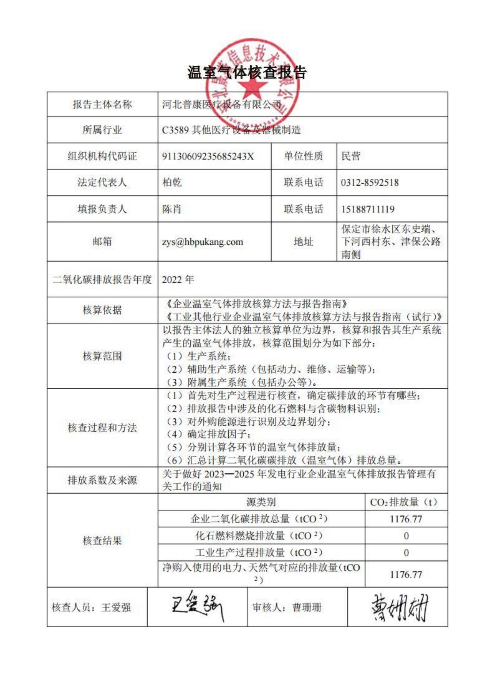 2022年溫室氣體排放核查公示